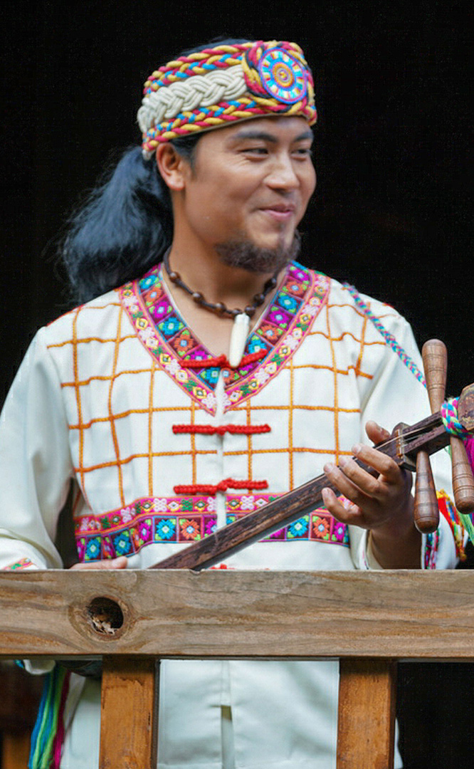 佤族人口約36萬,主要聚居在云南省瀾滄江南段以西的阿佤山區(qū)。佤族寨位于“翠漪洲”東南角。寨內(nèi)分布有茅草頂?shù)母蓹谑浇ㄖ骸⑴n^廣場(chǎng)、神靈廣場(chǎng)、司崗里石雕以及糧倉(cāng)等。牛頭廣場(chǎng)是佤族古老的剽牛活動(dòng)場(chǎng)所,場(chǎng)正中的牛角為佤族的寨樁,廣場(chǎng)前的兩個(gè)石人分別為佤族的男性和女性祖先。神靈廣場(chǎng)表現(xiàn)了佤族萬物有靈、靈魂不死的自然崇拜觀念。場(chǎng)中兩個(gè)石人雕像分別為佤族最崇拜的“木依吉”和“阿依娥”。佤族木鼓舞節(jié)拍鮮明強(qiáng)烈,...